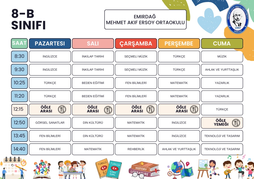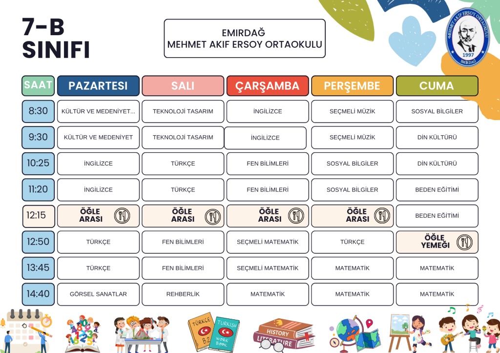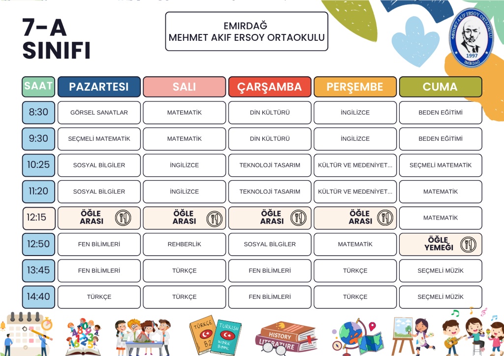 Okulumuzun güncel sınıf bazlı ders programları hazırlanmış ve erişime açılmıştır. Öğrencilerimizin akademik süreçlerini düzenli takip edebilmeleri amacıyla haftalık çizelgelere aşağıdaki resimlerden ulaşabilirsiniz.